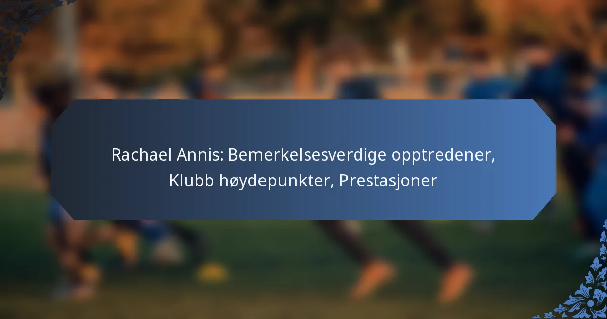 Rachael Annis har gjort betydelige bidrag til sine lag gjennom en rekke fremragende prestasjoner, som viser hennes ferdigheter og vilje på banen. Hennes evne til å utmerke seg i pressede situasjoner og hennes innflytelse på lagdynamikken har definert hennes karriere.